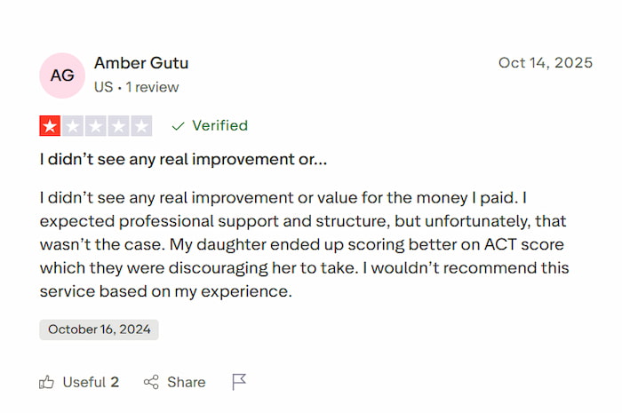 For instance, on Trustpilot, C2 Educate has a 3.7/5 rating, with many complaints about the service not meeting expectations. One reviewer wrote, “I expected my child to get more personalized guidance for the money I spent. It felt like they were just going through the motions with us.”
