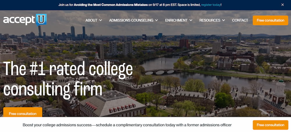 AcceptU.com offers comprehensive college admissions consulting services with some pros and cons.