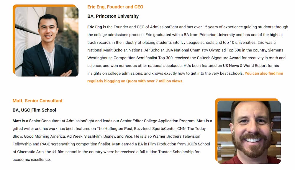 In my opinion, you should avoid hiring consultants at AdmissionSight, because I found no real value in their services and no real positive AdmissionSight reviews. From my experience reviewing and working with different college admission consulting companies, Admissionado is the only one that stands out.
